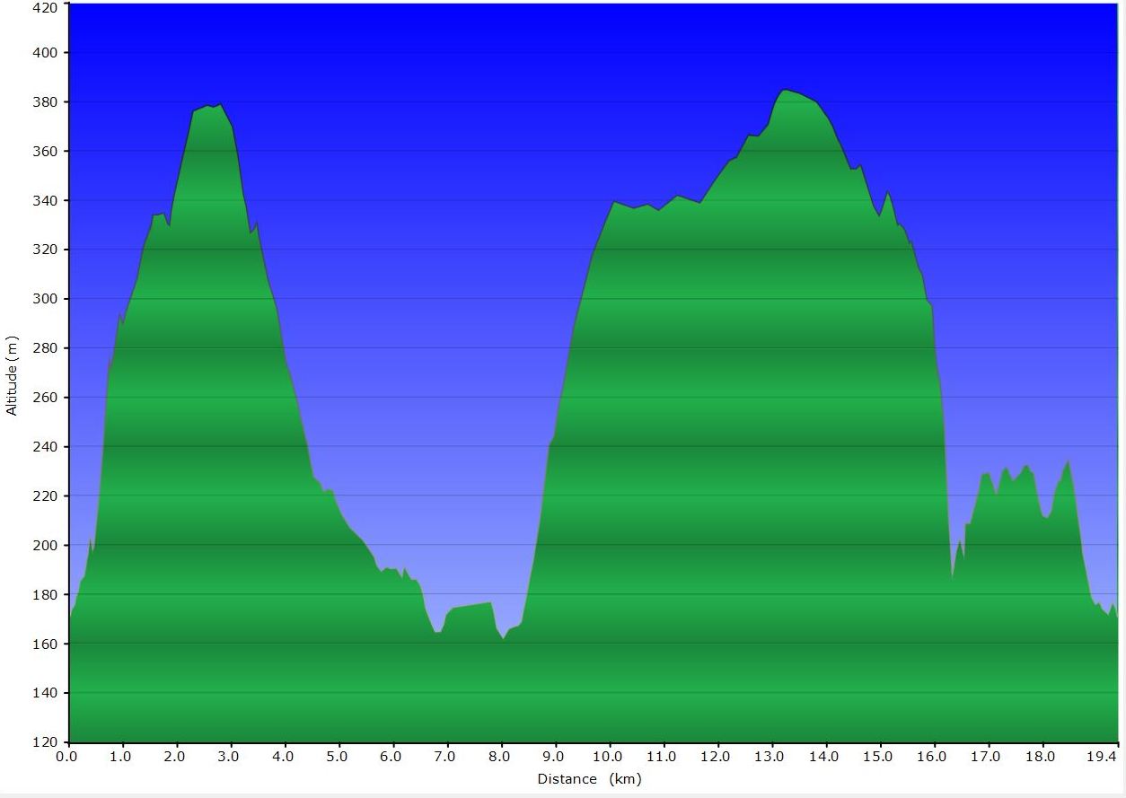 Rando probablement au départ de Bohan, le long de la Semois avec une incursion en France et parcours entre 160 et 390 m dans un terrain relativement valloné. Deux belles montées sur la journée. Le dénivelé de la rando Bohan